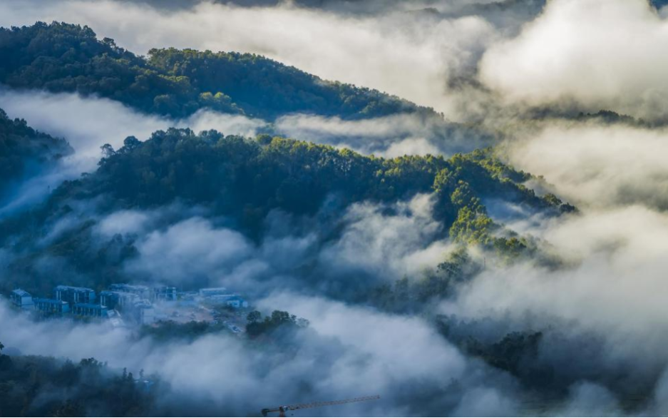 云雾缭绕的五指山水满乡。孟志军 摄
